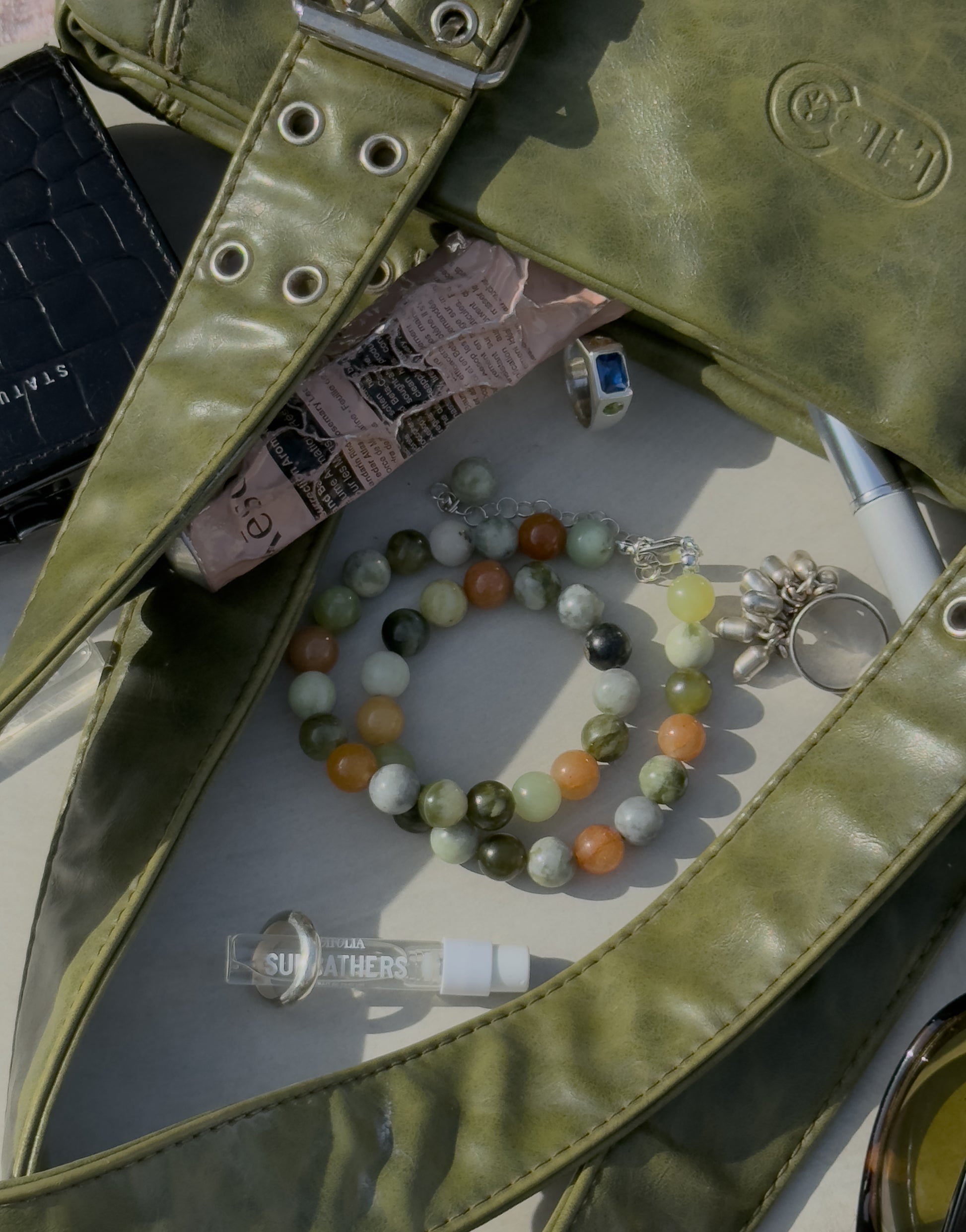 Materials are sourced both locally and overseas, with a focus on semi-precious and precious stones, recycled beads, and high-quality glass. Each one is chosen for its tone, texture and longevity. If it doesn’t wear well, it doesn’t make the cut.