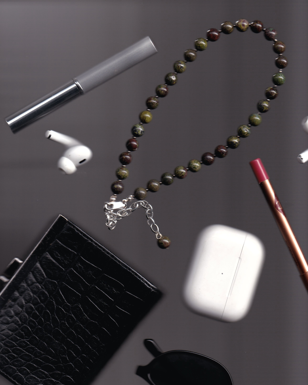 Materials are sourced both locally and overseas, with a focus on semi-precious and precious stones, recycled beads, and high-quality glass. Each one is chosen for its tone, texture and longevity. If it doesn’t wear well, it doesn’t make the cut.