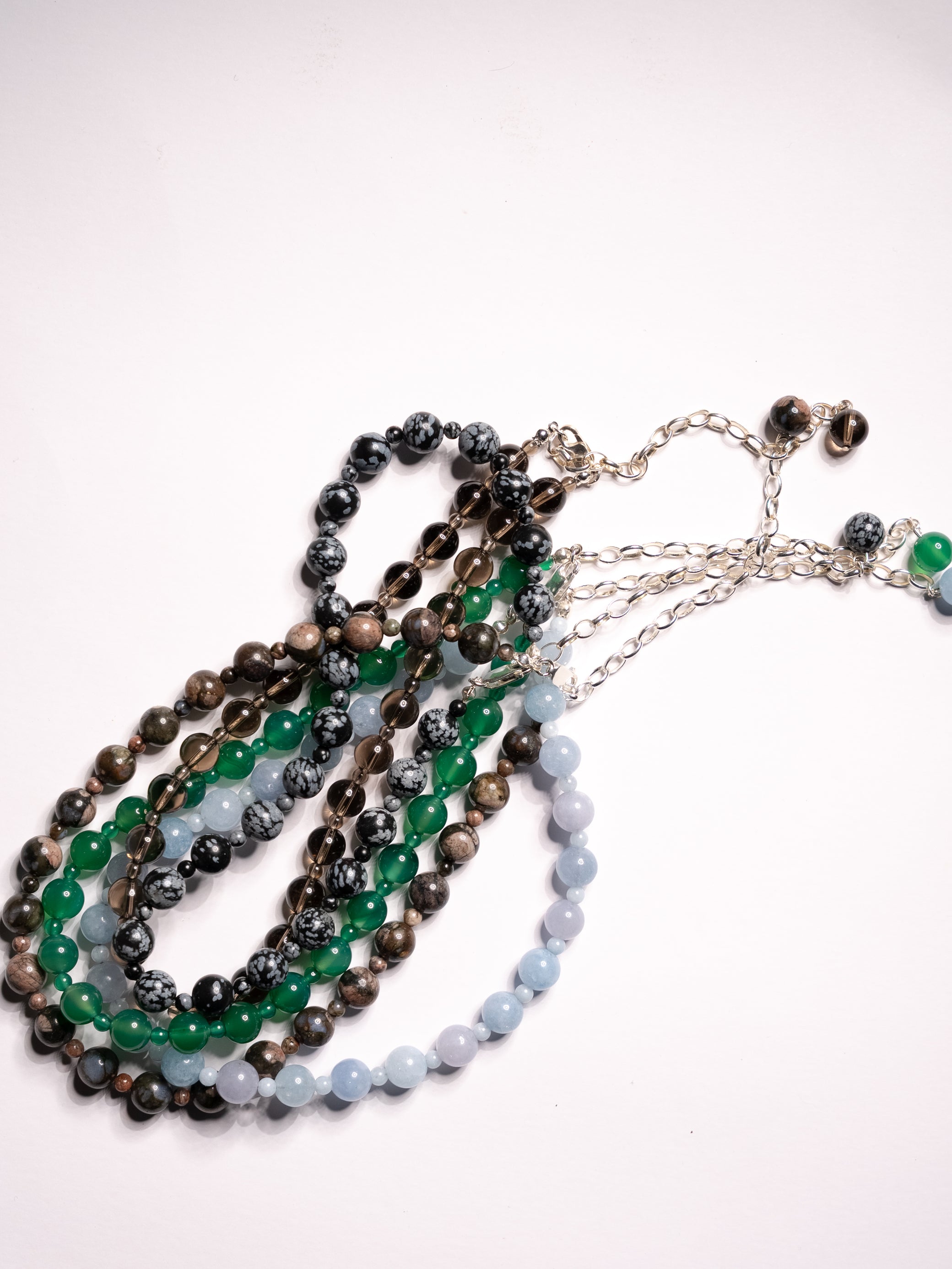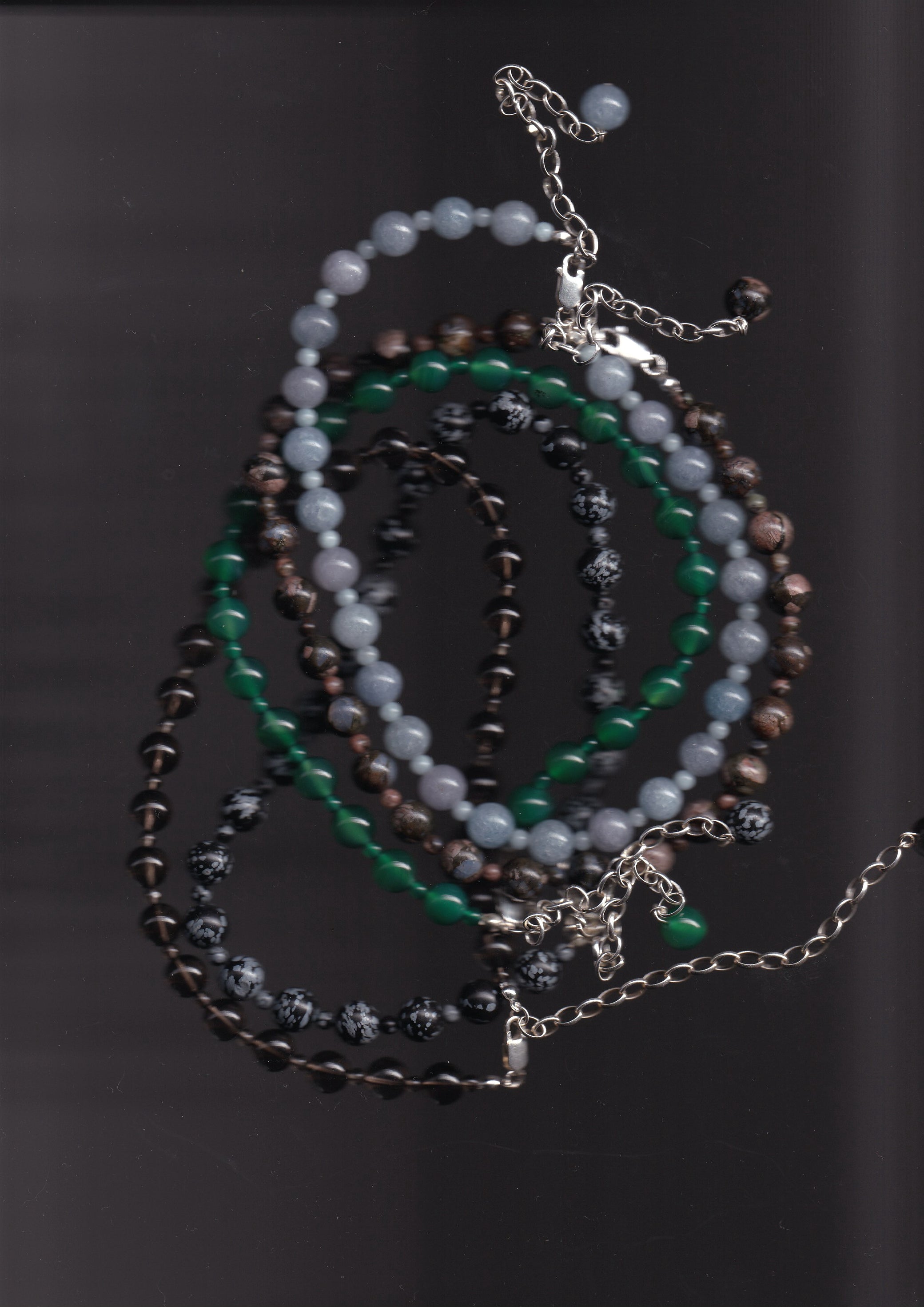 Materials are sourced both locally and overseas, with a focus on semi-precious and precious stones, recycled beads, and high-quality glass. Each one is chosen for its tone, texture and longevity. If it doesn’t wear well, it doesn’t make the cut.