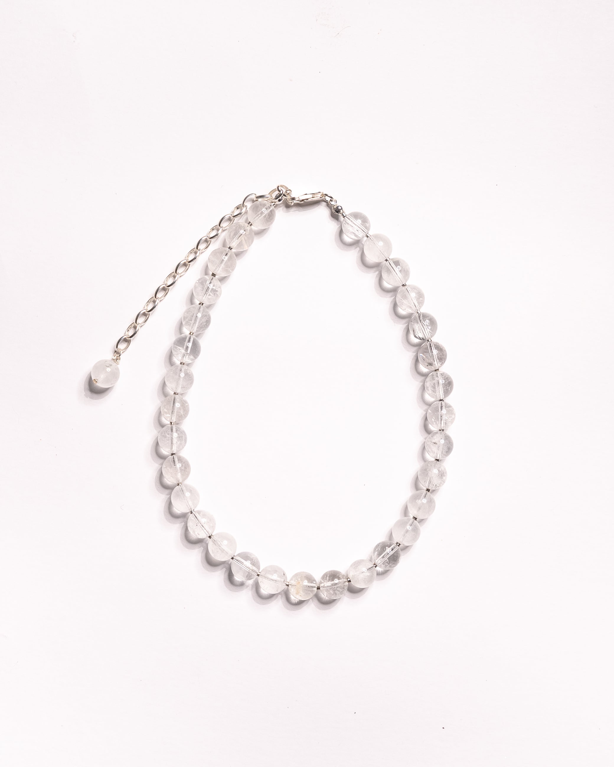 10mm Clear Quartz & 2mm Silver Japanese Seed Beads with Premium Sterling Silver 925 Findings